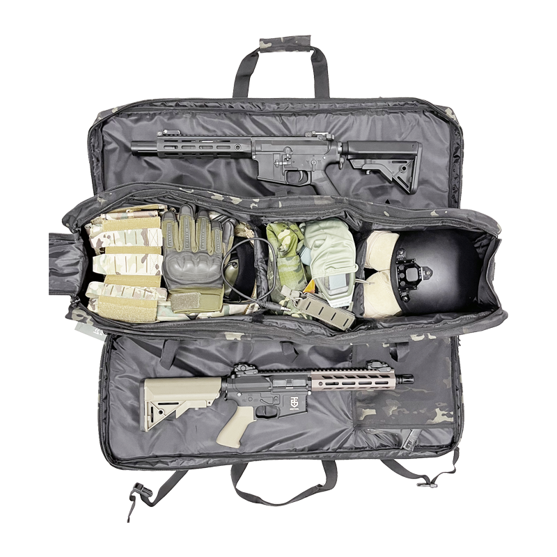 Su diseño inteligente incluye aberturas laterales para armas largas y un gran bolsillo central con separadores modulares, que facilitan la organización y protección de cada elemento del equipo. Fabricada con materiales resistentes, garantiza durabilidad y soporte incluso en condiciones exigentes.
