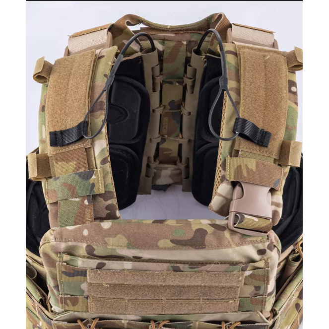 Un chaleco altamente ajustable que puedes poner a tu gusto gracias al side harness doble y unas hombreras intercambiables. El Plate Carrier consta además de dos pouches de radio tipo Harris, pero qué bueno, ahí puedes poner lo que te sea más cómodo. En la zona de la espalda cuenta con la opción de poner backpanels estilo Crye de cremallera.