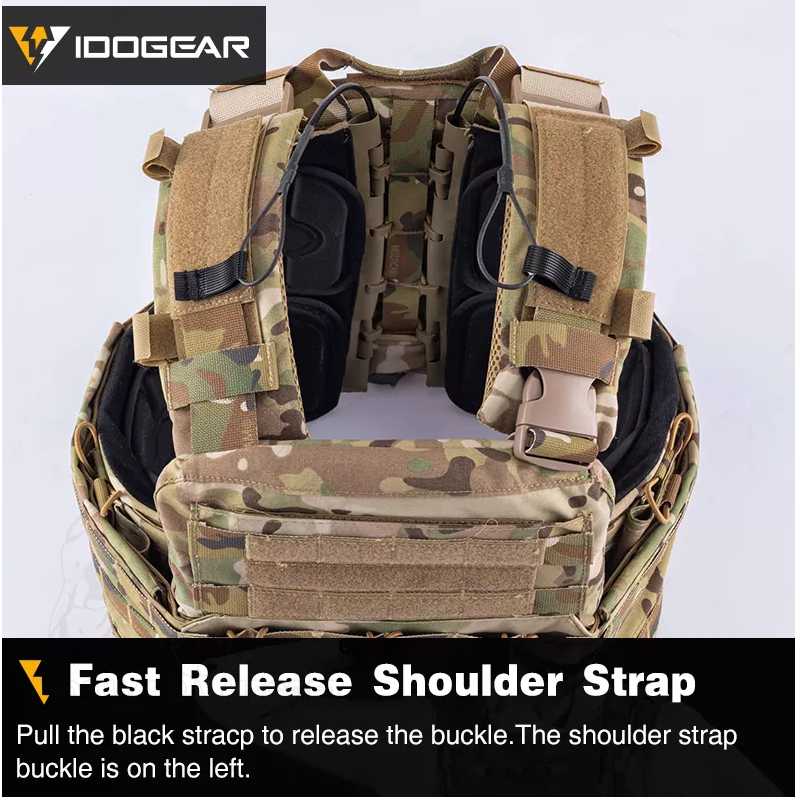 Si buscas un chaleco actual y full personalizable, IDOGEAR tiene algo para ti. El chaleco táctico CPC. Un porta placas más estilo acorazado y de material resistente y duradero, con mil y un detalles que te encantaran. Se trata de un chaleco táctico con sistema quick release en los hombros para que puedas sacarte un peso de encima con facilidad, solo has de tirar de las tiras de y listo, el chaleco caerá y te dejara libre de la carga.