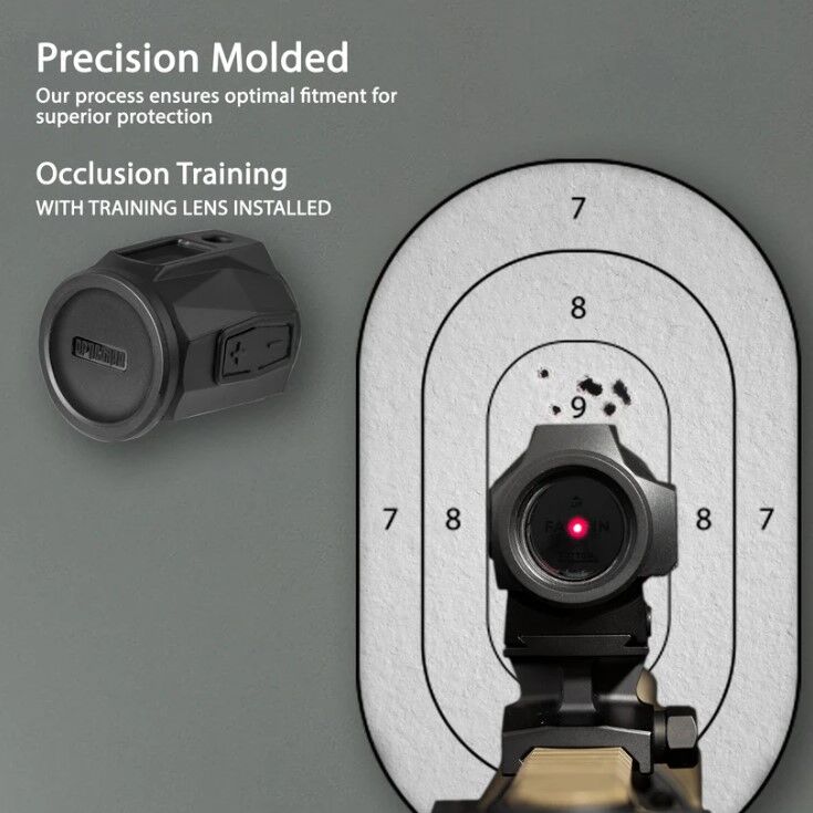 Incluye una lente de entrenamiento desmontable, ideal para entrenamientos con oclusión visual o disparo en entornos muy iluminados. Una alternativa moderna y eficaz al uso de cintas adhesivas.
