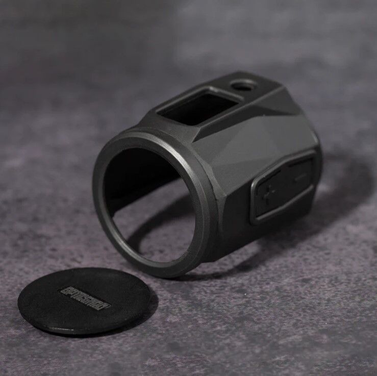Fabricada en TPU (poliuretano termoplástico) de alta resistencia y policarbonato, esta cubierta protege contra la abrasión y el desgaste por uso intensivo. Su sistema de anclaje con pines entrelazados asegura una fijación sólida incluso con retroceso fuerte, como el generado por correderas en armas cortas.