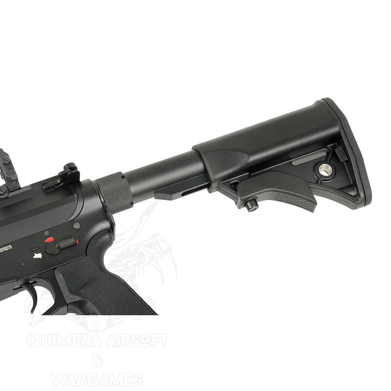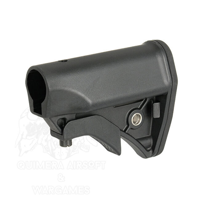 Fabricada en polímero ultraligero y resistente, esta culata PDW es más corta que otras culatas AR15/M4 compactas del mercado, lo que facilita movimientos rápidos, recargas ágiles y un transporte más cómodo. Su diseño permite un apoyo firme en el hombro, mejorando la precisión y el control incluso durante partidas dinámicas o de alta intensidad.