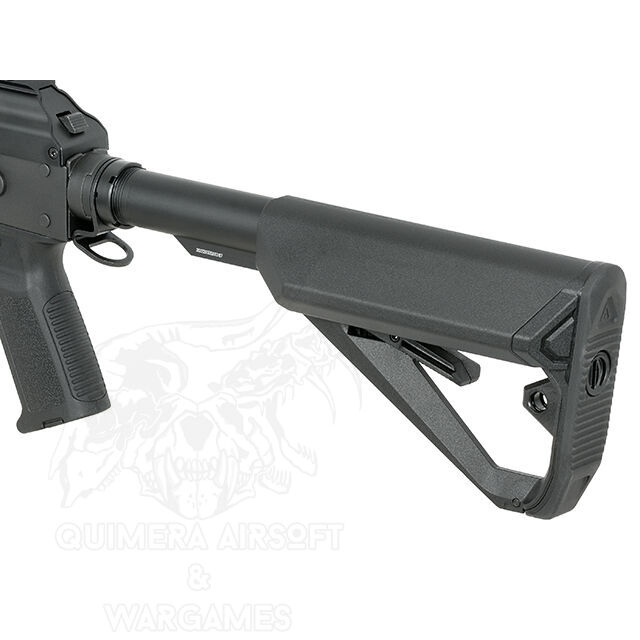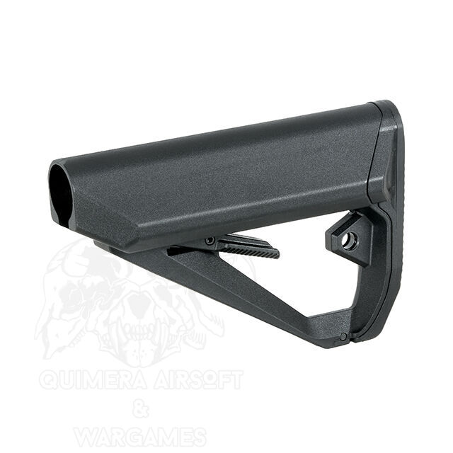 Fabricada en ABS de alta resistencia, combina durabilidad y ligereza, asegurando un montaje sólido y un uso prolongado incluso en entornos de juego exigentes. Su diseño permite un apoyo firme para el hombro, mejorando la estabilidad al disparar y facilitando movimientos rápidos y precisos.