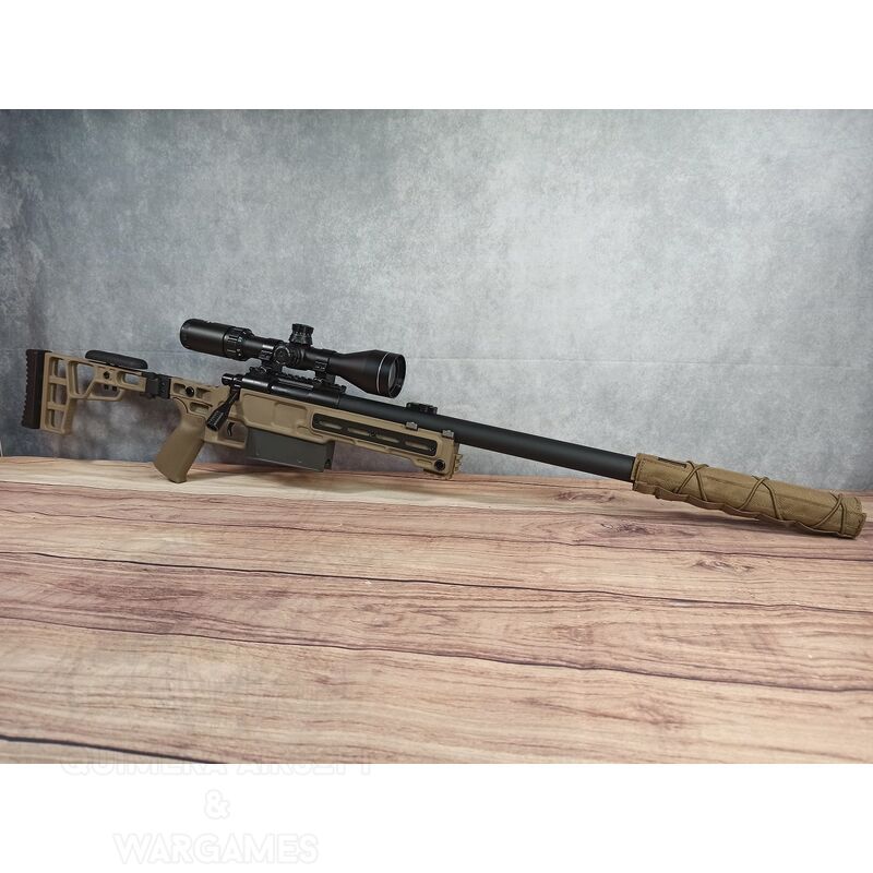 Un rifle de francotirador con piezas duraderas y de alta calidad, listas para ofrecer el máximo rendimiento y todo medido para que quede dentro de Julios y no tener problemas en ningún campo de España.