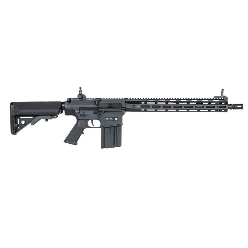 La última incorporación a la serie Edge está diseñada para jugadores que no quieren pasar años mejorando su réplica. Specna Arms, con la ayuda de Double Bell, ha creado un modelo atractivo tanto por dentro como por fuera, lo que resulta en el SR-25 más práctico y de mayor calidad hasta la fecha. Para la fabricación del cuerpo de la réplica, la marca no ha aceptado compromisos: el material utilizado es idéntico al del arma real, con una construcción completamente metálica (aleación de zinc y aluminio), al igual que en las armas de gama alta de Specna Arms. Las únicas partes de polímero son la culata y la empuñadura de pistola, fabricadas con polímero reforzado con fibra, como en el arma real.
