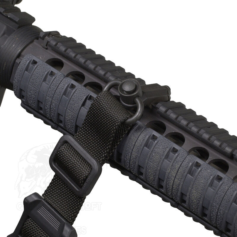 El enganche de correa QD tipo MGPUL para Picatinny es un accesorio táctico diseñado para proporcionar un punto de montaje sólido y seguro para correas de dos puntos en rifles. Un enganche muy moderno y perfil muy bajo, asi mantener esa estética moderna y minimalista al máximo.