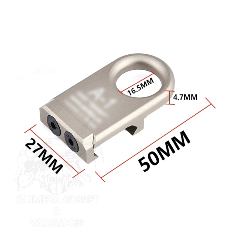 Enganche para los fans del estilo rusky. Esta sling mount del tipo A-1 es el usado por las fuerzas rusas. Pensado para raíles tipo picatinny en las AK’s mas modernas y tacticool. Y así poder montar una correa para cargar la réplica más fácilmente.
