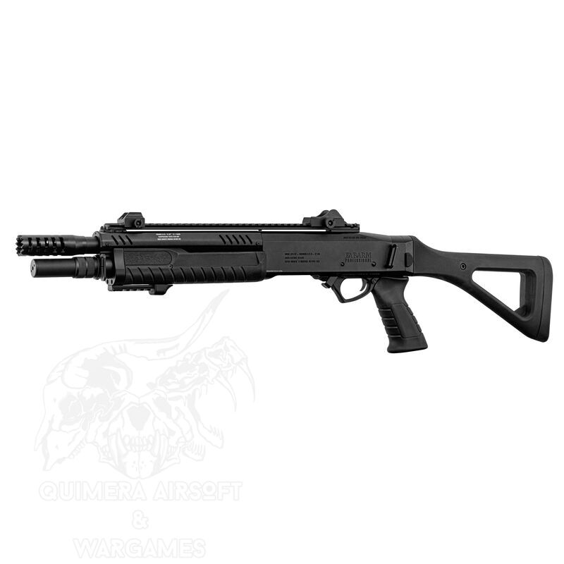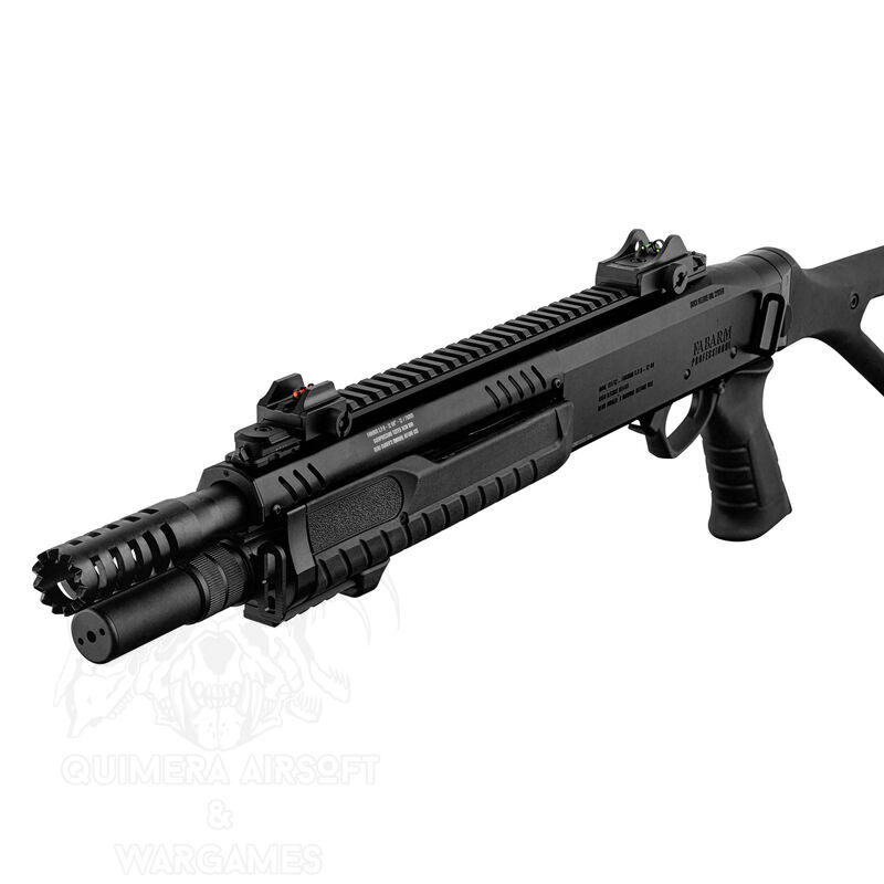 Con la licencia del fabricante italiano Fabarm os traemos una escopeta de gas con capacidad de disparar tres o seis bolas a cada disparo, fabricada en polímero ABS para una réplica superligera, pero con una sensación de tener algo sólido y consistente entre las manos. Además, en la parte inferior puedes colocarle todo tipo de accesorios (grip para mejorar el amartillado, una linterna o un láser), gracias a su engomado en pistolete y laterales facilitará mucho la comodidad, agarre y amartillado. Una escopeta de un tamaño reducido, para incluso llevarla como secundaria para momentos de necesidad.
