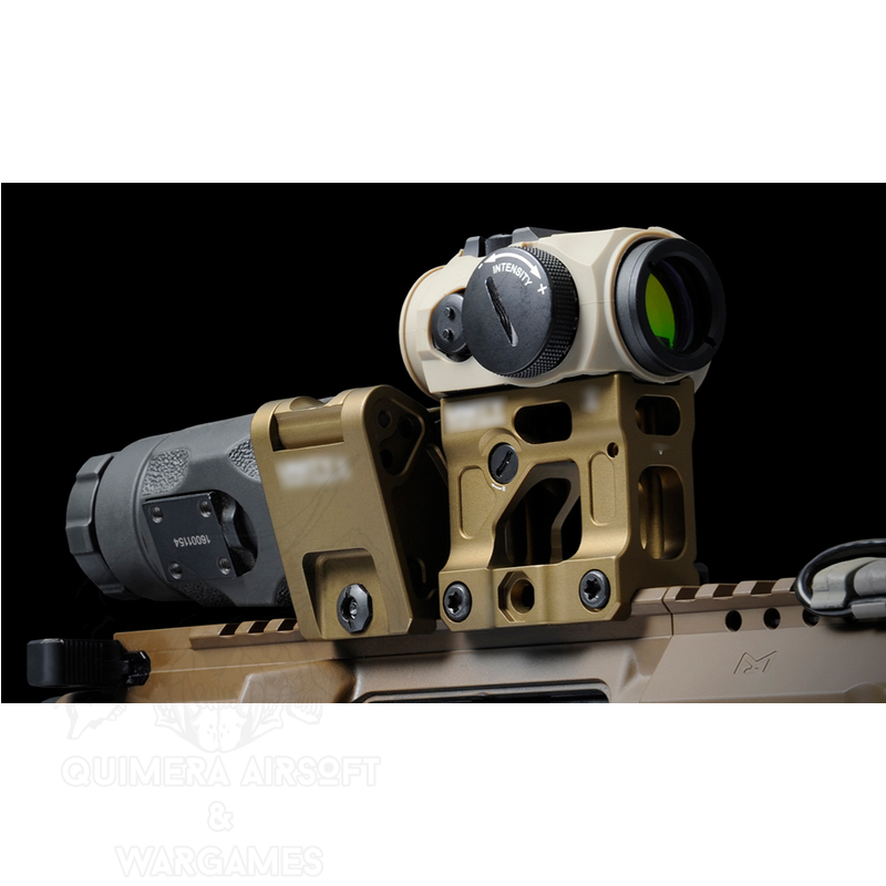 Montura tipo UNT estilo FAST FTC para tu magnificador y poderlo alinear con tu punto de mira. Lo especial de este producto es que en vez de situarse plegado en un lateral, se pliega sobre el raíl.