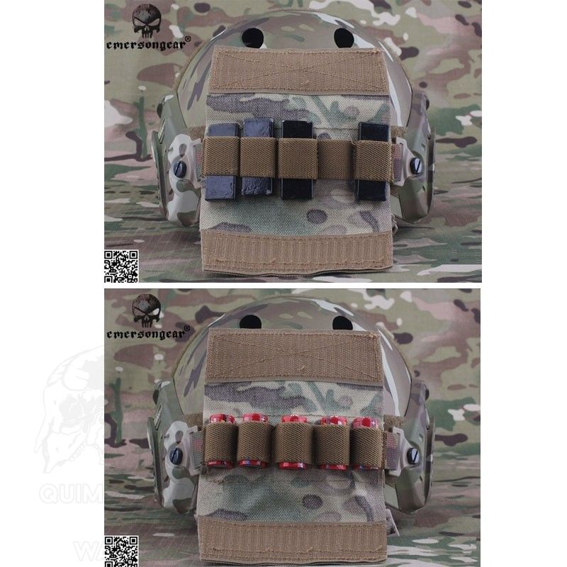 Emerson nos da un pouch extra para el casco, que te servirá como contrapeso. Principalmente, está pensada para llevar las baterías del NVG y una zona de velcro trasera para que puedas colocar un parche de tu elección, aunque recomendamos alguno que sea fosforescente y así tus compañeros te podrán seguir en la oscuridad. Pese a estar diseñado para las baterías, puedes utilizarlo como pouch admin también, y llevar ahí pilas, alguna herramienta, papeles, o lo que se te ocurra.