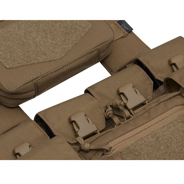 Este sencillo chest panel es el complemento perfecto para cualquier chest rig, ya que amplía de manera eficiente el espacio disponible para montar equipo adicional. Es una solución universal diseñada para llevar todo tipo de pouches y elementos esenciales como teléfonos, sistemas de navegación, sistemas de apoyo en el campo de batalla o granadas adicionales.