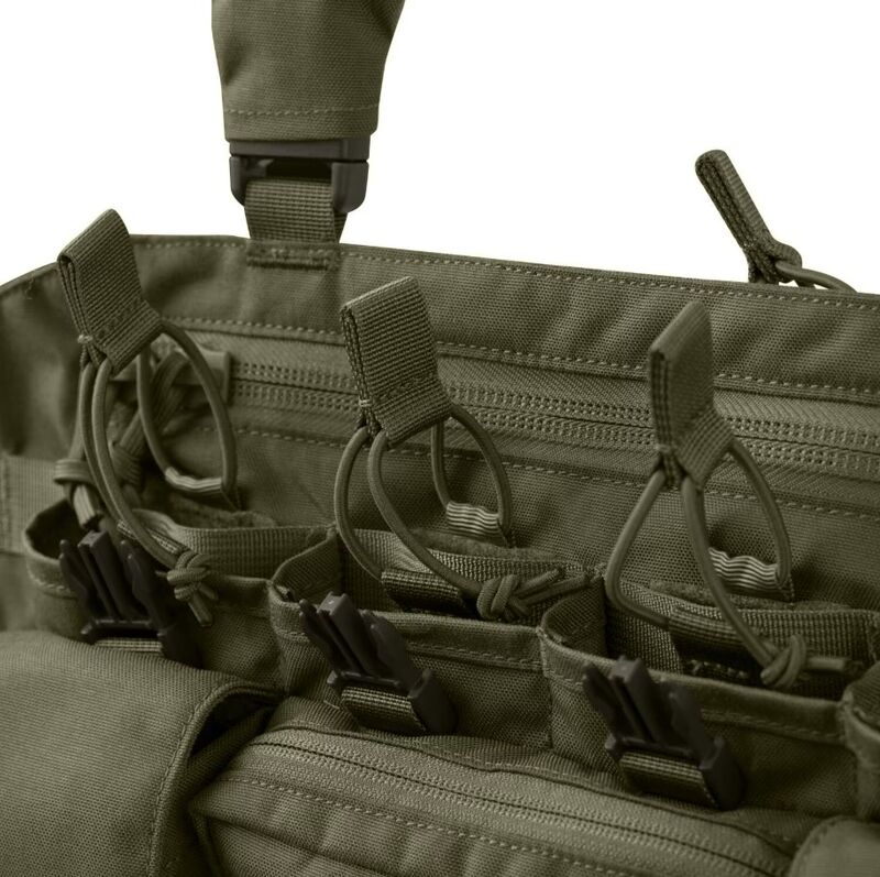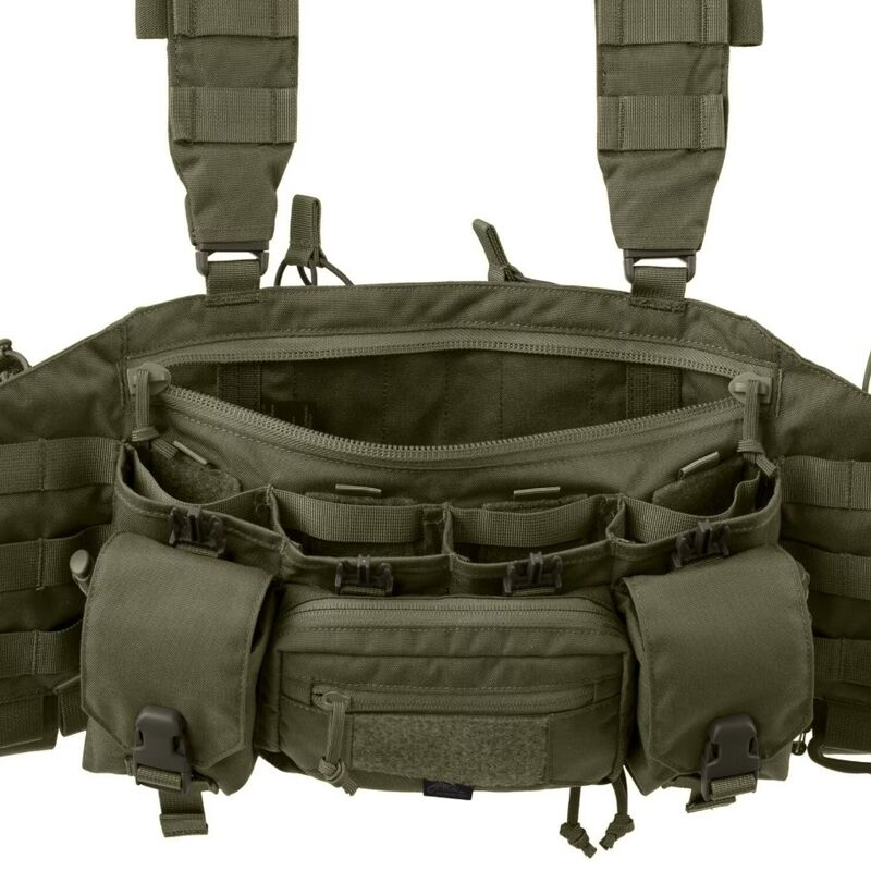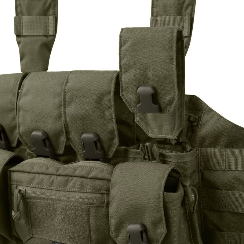 Creedme cuando os digo que el Guardian Recce Chest Rig es la mejor plataforma para partidas de bosque o tipo MilSim. Diseñada para operaciones de reconocimiento y tácticas en entornos naturales en escenarios de guerra real, su configuración permite alojar cuatro cargadores AK/AR en bolsillos asegurados con clips, que pueden ser fácilmente extraíbles mediante velcro y ser sustituidos por elásticos que ya vienen incluidos. Además, cuenta con un amplio bolsillo administrativo en la parte frontal, forrado con velcro hembra que permite personalización mediante insertos del sistema VIS (Versatile Insert System). Este bolsillo también incluye una apertura ajustable para evitar que los contenidos se caigan. A cada lado del admin pouch hay dos bolsillos universales con cierre de hebilla, ideales para granadas de fragmentación o humo, o bien para dos cargadores de pistola con insertos de la serie Competition.