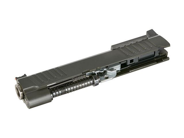 Además, Army Armament ha priorizado la ergonomía añadiendo los patrones de texturizado stippleing manual en el grip, ofreciendo una superficie antideslizante que mejora el control y asegura una sujeción firme, incluso en situaciones de disparo dinámico. En su búsqueda por fabricar réplicas fiables y duraderas, Army Armament ha reforzadola pistola con componentes de acero en áreas críticas sujetas al desgaste. Las piezas reforzadas incluyen el conjunto del martillo, el liberador del cargador, el martillo, el percutor con desconector y la guía del resorte de retroceso. Además, la réplica ha sido actualizada con un sello de gas de 70 grados en la válvula del cargador y un cabezal de pistón mejorado de 70 grados.