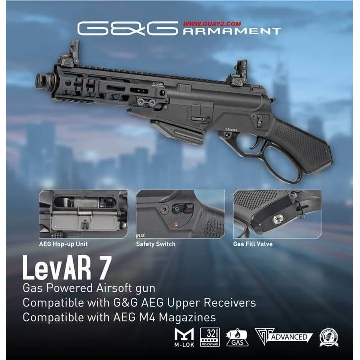 Se trata de una réplica ultra personalizable y upgradeable para poder hacerla una máquina de matar y poder defender tu rancho de todo aquel malandrín que quiera robarte el ganado. Aunque no lleve culata puedes colocar por todo tipo de culatas tipo SIG por el Picatinny que lleva en la empuñadura. Su Upper similar a un M4 te permite cambiarle el guardamanos al que tú elijas (nosotros te recomendamos el RIS III o el URGI MK16). Su liberador de cargador ambidiestro te permitirá cambiar el cargador de 32 BBs que incluye por cualquier cargador de M4, inclusive un drum, que te darán la opción de hacer la satisfactoria y adictiva acción de palanca para cargar la siguiente BB decenas de veces. Gracias a sus alzas abatibles podrás acertar a una lata de judías a 100 yardas o simplemente molar más. Y como colofón el cañón tiene rosca de 14 mm CCW para que puedas montar todo tipo de bocachas, silenciadores y tracers.