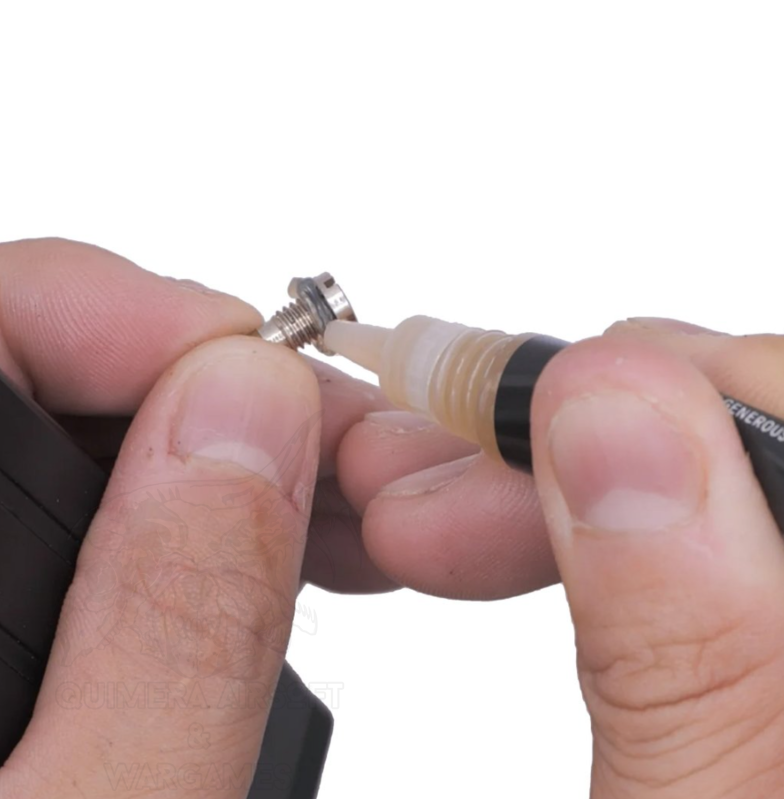 Está especialmente formulado para fijar o prevenir fugas en juntas tóricas que estén fallando. El compuesto de alta viscosidad garantiza una excelente adherencia para mejorar la integridad del sello. Su alto contenido de silicona también mantiene los componentes de goma flexibles para una vida útil más larga. Cuando se aplica en áreas presurizadas como los cargadores de GBB, 4UANTUM SEAL penetrará y llenará las irregularidades entre los sellos de las válvulas para ayudar a que los cargadores retengan una carga completa durante más tiempo.