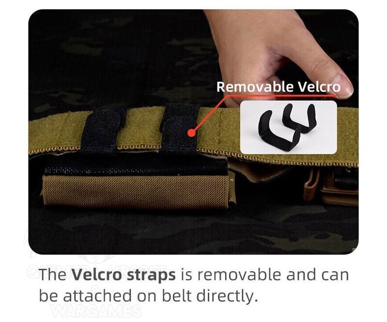 - Las correas de velcro en el pouch son removibles y pueden ser sujetadas directamente a tu cinturón.