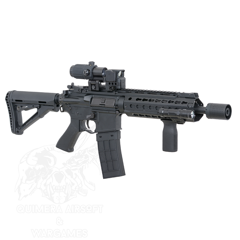 Desde Aim-O han creado una mira holográfica llamada FC1 Sight 2 MOA. Un visor de punto rojo sin aumentos con una estética muy futurista y de tamaño reducido, que no significa que sea algo más frágil, sino que tiene una construcción en aluminio muy sólida y resistente.