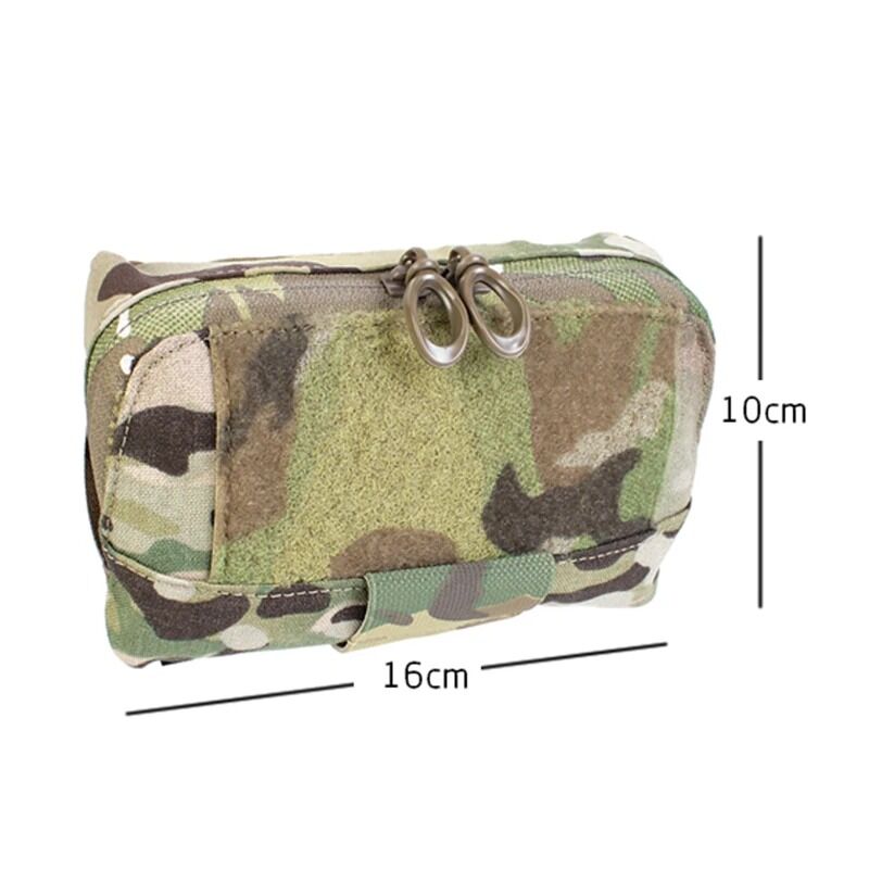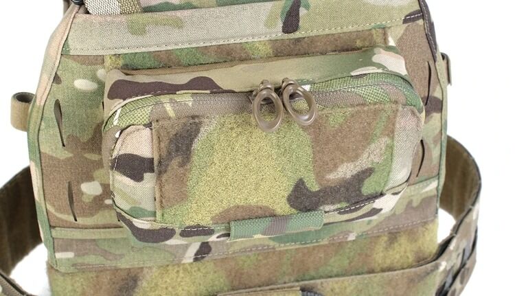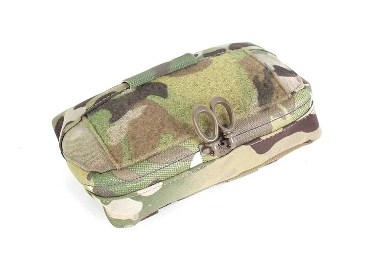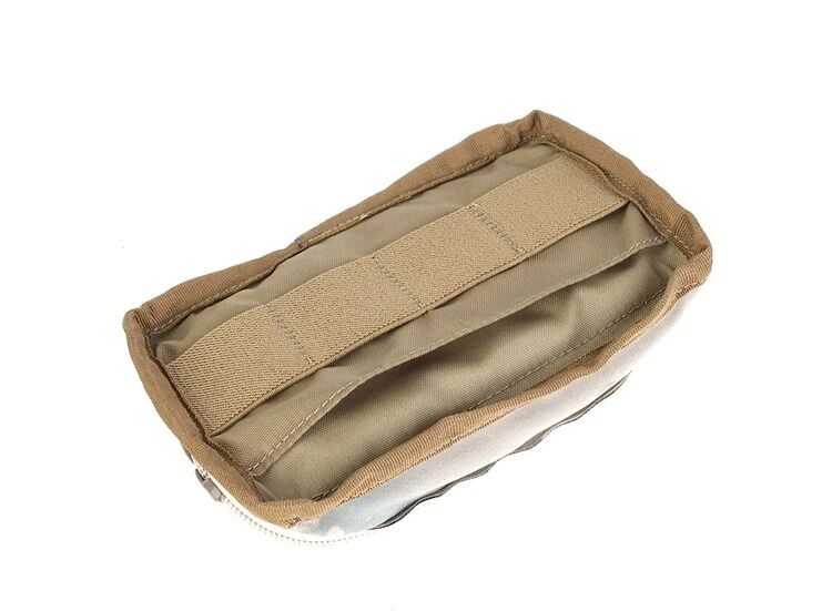 Cuenta con una gran apertura con doble cremallera, que permite un acceso rápido al contenido sin riesgo de que se caigan los objetos al abrirlo completamente. El pouch está fabricado con sistema MOLLE integrado y pestañas rígidas tipo “tuck tab” que aseguran una fijación firme sin añadir volumen innecesario.