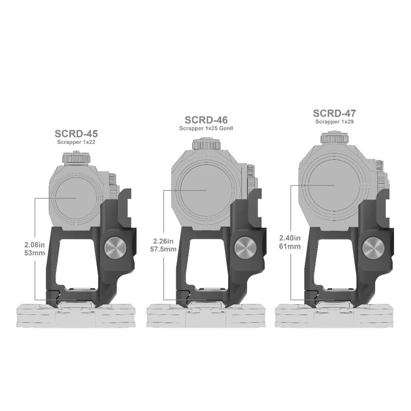 Compatibilidad de ópticas: Diseñada para SCRAPPER red dots (1×25 / 1×22 / 1×29) y PARAGON Magnifier (Mini 1x y 3x prism).