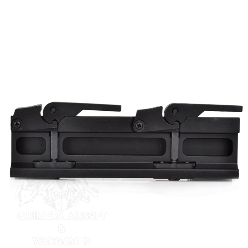 Una montura para tu visor de aumentos o short dot de 25.4mm a 30mm. Esta montura táctica cuenta con dos enganches QD para su colocación rápida en un raíl Picatinny de cualquier fusil o rifle de francotirador de airsoft