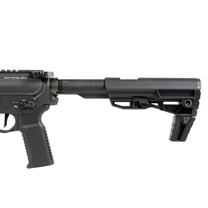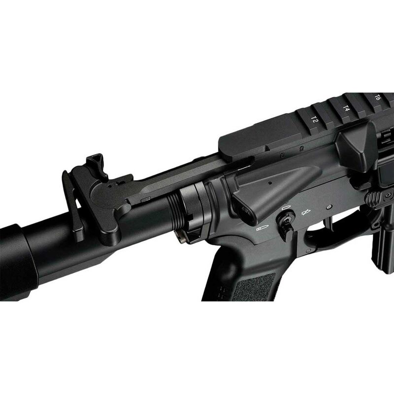 Hay que destacar la gran calidad de fabricación y el acabado con tratamiento Cerakote en el cuerpo que le otorga una gran resistencia a arañazos y el paso del tiempo. A nivel técnico hace uso del sistema Zet System que disfrutamos en otros modelos GBBR como la MWS y que tan buenos resultados ofrece con un disparo espectacular y de gran alcance y agrupación. Una réplica full metal, con una culata minimalista, ajustable y que cuenta con enganche QD., pistolete ergonómico, controles ambidiestros y gatillo recto, un aspecto muy moderno y táctico. La réplica está equipada con un guardamanos largo M-LOK. El conjunto incluye 3 rieles de montaje compatibles con ese sistema de montaje. El cañón estriado presenta una bocacha personalizada en su extremo.