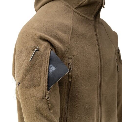 La chaqueta está hecha de un nuevo material de Hybrid Fleece (340 g/m2) que reduce el peso y mejora la transpirabilidad, manteniendo parámetros de calidez similares a la primera versión. El material de Hybrid Fleece tiene dos capas diferentes. En el exterior, se asemeja a un forro polar clásico, pero en el interior, es un forro polar de rejilla. Es un material con una característica estructura de cuadros finos de piezas cuadradas más gruesas y espacios más delgados en el medio. Esto hace que el Patriot Mk2 sea más ligero y transpirable, al mismo tiempo que te mantiene abrigado. Las ventilaciones con cremallera bajo las axilas ayudan con la termorregulación.