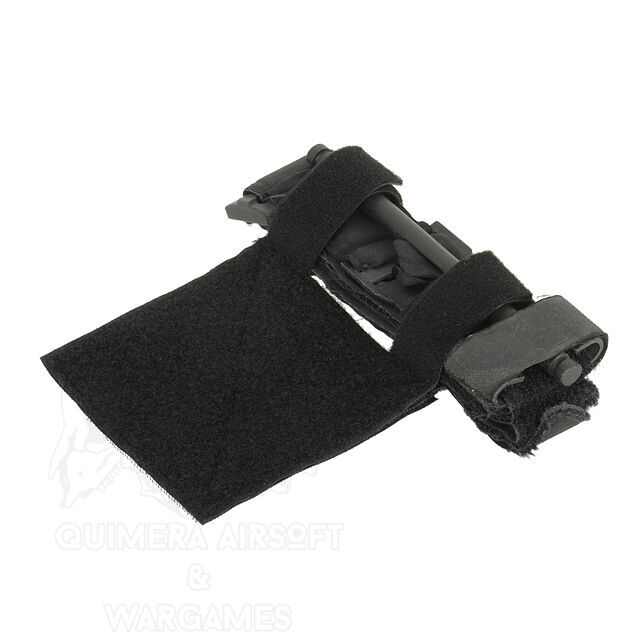 Para poder llevar el torniquete en las partidas tenemos este pouch específico, y a veces, lo mejor es lo más sencillo. Se trata de algo muy simple: una zona con velcro macho y hembra para poder engancharlo en cualquier cinturón de primera línea, o en las zonas del cummerbund o las zonas de los paneles para los chalecos portaplacas o en los chest rigs de todo tipo. Mientras que para colocar el torniquete se basa en dos tiras de velcro para su fácil colocación y extracción.