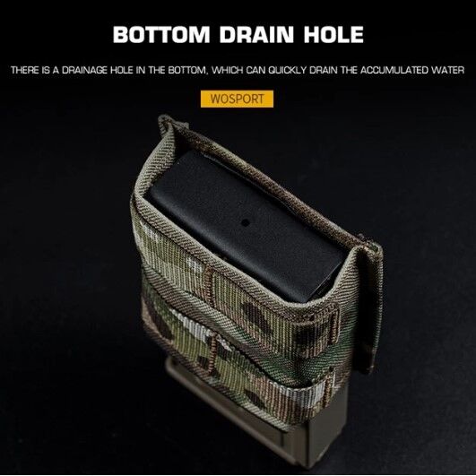 Siempre va bien llevar más munición encima; por eso nos hacen falta algún que otro pouch para cargador. Este caso tenemos uno para un cargador suelto, con estilo single pouch en estilo KYWI (pouch abierto con inserts rigidos para poder asegurar con mayor seguridad nuestro cargador). Un pouch largo que nos permitirá montarlos en nuestra primera línea o directamente en cualquier sistema MOLLE de nuestros portaplacas.