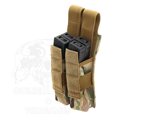 Siempre va bien llevar más munición encima; por eso nos hacen falta algún que otro pouch para cargador de SMG. Ahora 8Fields, nos trae en su pouch doble. En la parte trasera consta de las típicas tiras de mole, con botones de cobre, para que puedas atarlo a cualquier sistema porta equipos con MOLE de manera segura y duradera En él cabrán dos cargadores de 9 mm (MP5/MP7/MP9) que podrás asegurar el cargador, con la tira de velcro superior totalmente ajustable, y así evitar caídas. El pouch puede acomodar fácilmente un cargador, una linterna, un cuchillo u otros equipos.