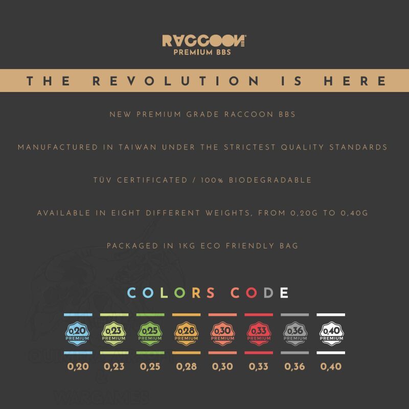 Las BBs raccon premium son una gran opción para los jugadores de airsoft que buscan BBs de alta calidad y respetuosas con el medio ambiente. Están hechas de biopolímeros, cosa importante ya que en la mayoría de campos nos exigen que las bolitas sean bio.