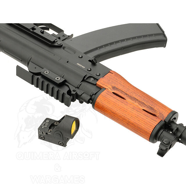 Pon tu AKS74U más tacticool y con un +10 en precisión si utilizas este raíl en combo con una mira. Al permitir la instalación de miras más avanzadas y precisas, el riel B-18 contribuye a mejorar la precisión y la capacidad de apuntar de tu rifle de airsoft. El riel B-18 ha sido diseñado para complementar el aspecto estético del AKS-74U, brindando una apariencia auténtica y táctica al rifle. Esto no solo mejora la funcionalidad, sino que también agrega un toque de estilo a tu equipo.
