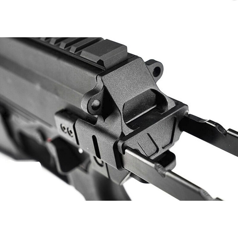 Diseñada para ser una réplica táctica completa, incorpora un enganche tipo TRILUG, que además de añadir un toque estético, ideal para operaciones CQB gracias a su tamaño ultracompacto PDW. Su construcción robusta de acero, aluminio anodizado CNC, y polímero reforzado con nylon asegura resistencia en las condiciones más exigentes. Con opciones de disparo entre Seguro, Semiautomático y Automático Completo, podrás adaptarte a diferentes situaciones en el juego. Su culata es uno de los mayores atractivos, ya que para desplegarla solo has de estirar de ella en una de las tres posiciones que tiene. Mientras que el pistolete es compatible con pistoletes tipo GBB M4 su gatillo es supersatisfactorio gracias a su corto recorrido y “crisp”.