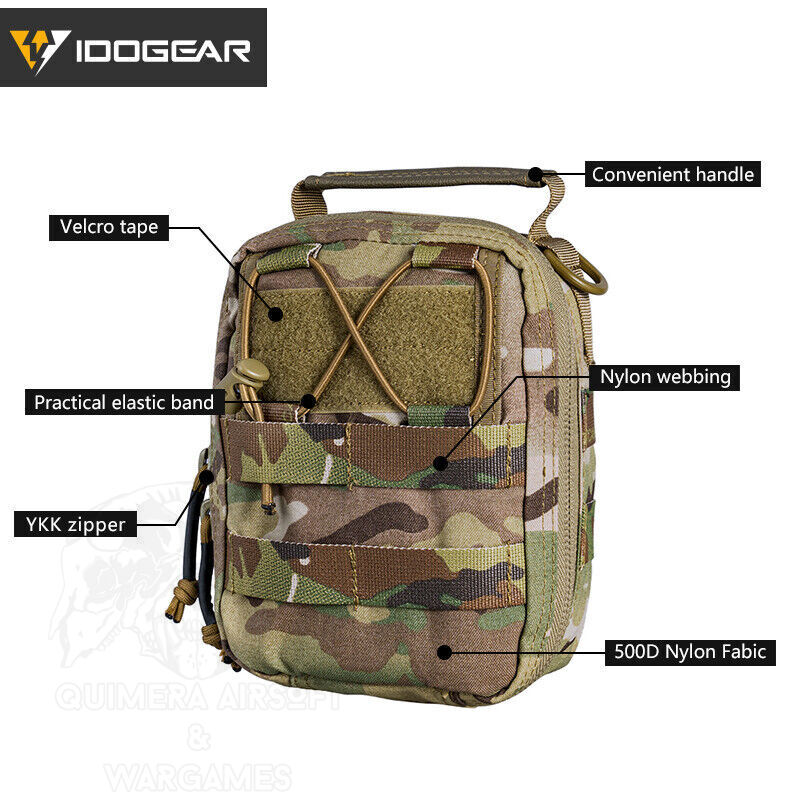 Los accidentes ocurren, y mejor ir preparado. Idogear nos da un pouch donde llevar el IFAK (Individual First Aid Kit), ya sabes: vendas, tijeras, medicamentos, mercromina, tiritas, gasas, etc. Todo lo que necesites si te haces pupa. Aunque bueno, también lío puedes usar de admin pouch gracias a su gran capacidad y sus diferentes compartimentos y su limitador de apertura para evitar que nada caiga cuando lo abramos.