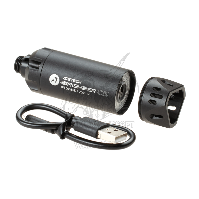 El Brighter CS de Acetech es una unidad de trazador que está diseñada para ser montada en la punta del cañón de una réplica de airsoft. Su función principal es iluminar las BBs trazadoras a medida que salen del cañón, creando una trayectoria luminosa que añade emoción y realismo a las partidas nocturnas.