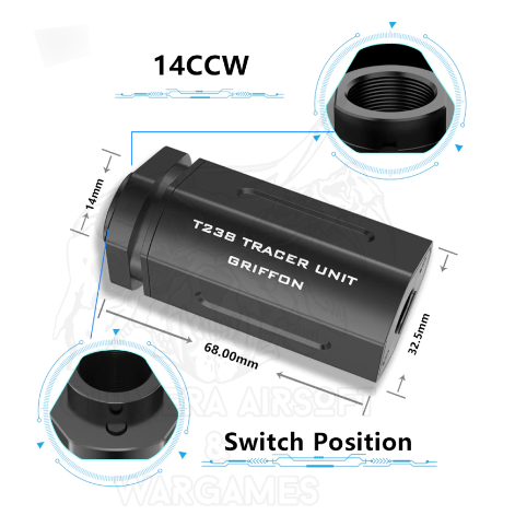 El trazador Griffon T238, un accesorio esencial para mejorar la experiencia de juego, especialmente en situaciones de baja luminosidad o partidas nocturnas. Este dispositivo se acopla al de las réplicas de airsoft y cumple una función importante: ilumina tus balines mientras viajan hacia su objetivo, creando un efecto visual impresionante y permitiéndote rastrear la trayectoria de tus disparos.