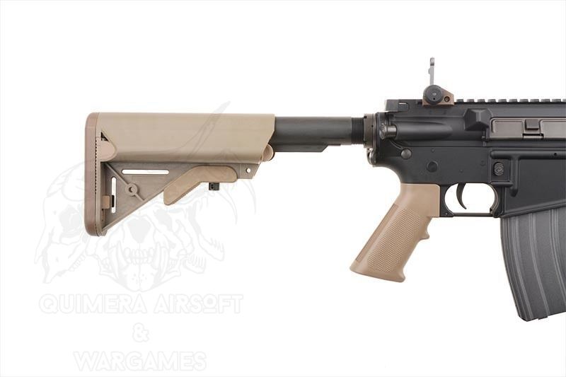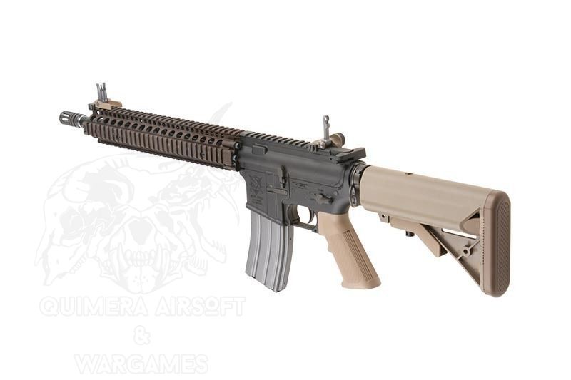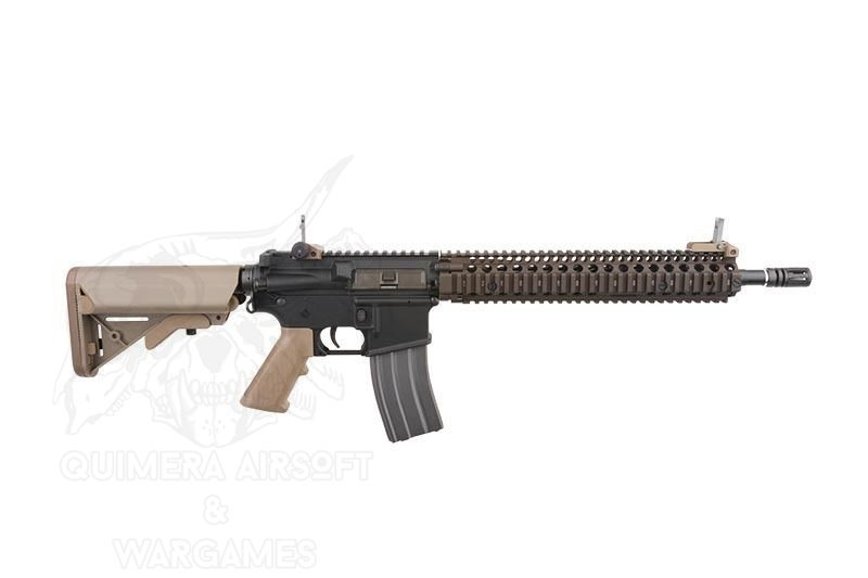 Una VR16 en su versión MK18 SOCOM con licencia de Daniel Defense para su guardamanos; arma utilizada por los US SOCOM (United States Special Operations Command) Una réplica que encantara a aquellos jugadores que quieran recrear las unidades especiales yankees más modernas.